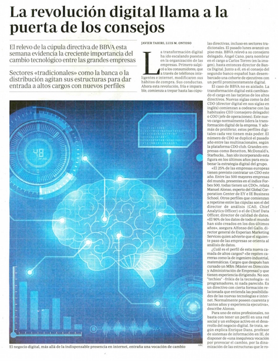 Luis Ontoso me envió un correo con algunas preguntas para un reportaje sobre el perfil digital de los directivos españoles, y ayer me citó en su artículo, escrito junto con Javier Tahiri, titulado «La revolución digital llama a la puerta de los consejos» (pdf).