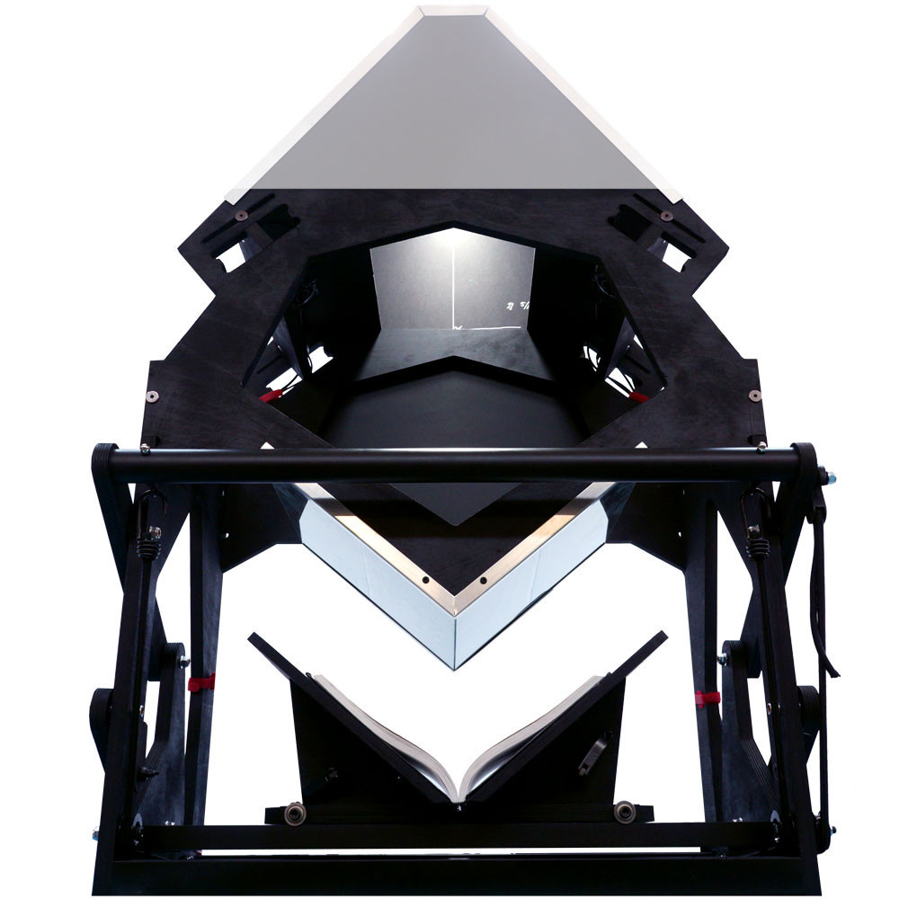 En la imagen, un escáner para libros. En realidad, los escáneres diseñados y construidos por Google para ese fin son bastante más eficientes, y han sido utilizados para construir, desde que en el año 2004 inició sus trabajos bajo el nombre de Google Print, el mayor repositorio digitalizado de libros de la historia de la humanidad.