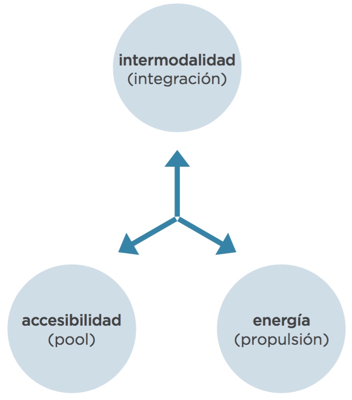 El estudio de las diferentes experiencias en otras ciudades prueba no solo que las opciones actuales no son suficientes, sino que los verdaderos beneficios de un rediseño de los esquemas de movilidad urbana solo se obtienen cuando desarrollamos un modelo, que hemos denominado AEI, en el que se combinan la Accesibilidad (que se apoya en la tecnología para permitir mejorar la e ciencia del mercado de transporte poniendo en contacto proveedores de servicios de transporte y potenciales viajeros en tiempo real y bajo demanda), la Energía (la evolución de las tecnologías que se emplean para propulsar el transporte: la mejora de eficiencia de los motores de explosión y el posterior abandono de las energías fósiles y su sustitución por tecnologías limpias) y la Intermodalidad o multimodalidad (una tarjeta unificada y virtual de transporte que se beneficia de la salida al mercado de un creciente número de aplicaciones para smartphones sobre horarios, destinos, conexiones y otros datos de interés, y que incluso permiten el uso del smartphone como instrumento de pago e identificación).