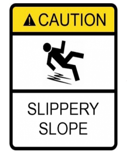 Un par de noticias recientes y las reacciones que han generado me llevan a considerar un tipo de falacia que me encuentro habitualmente en mis clases y discusiones relacionadas con el desarrollo tecnológico: la de la pendiente resbaladiza. En ella, un suceso es presentado como detonante seguro de una cadena de eventos que sin duda de ningún tipo darán la razón a quien lo propone, aunque no exista ninguna evidencia relevante de esa supuesta cadena de eventos.
