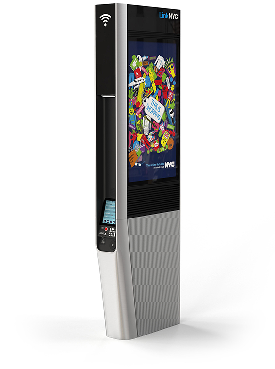 Sidewalk Labs, la compañía creada para la gestión de infraestructura de smart cities dentro de Alphabet, está participando en el concurso Smart City Challenge desarrollado por el Department of Transportation norteamericano con un mobiliario urbano para la presentación de información que ya lleva tiempo evaluando en Nueva York, un quiosco de casi tres metros de altura, con paneles publicitarios laterales, punto de acceso Wifi Gigabit, llamadas gratuitas dentro del país, cargadores USB para móviles, un teclado y una pantalla táctil situados a la altura adecuada para usuarios en silla de ruedas, y un botón específico para emergencias.