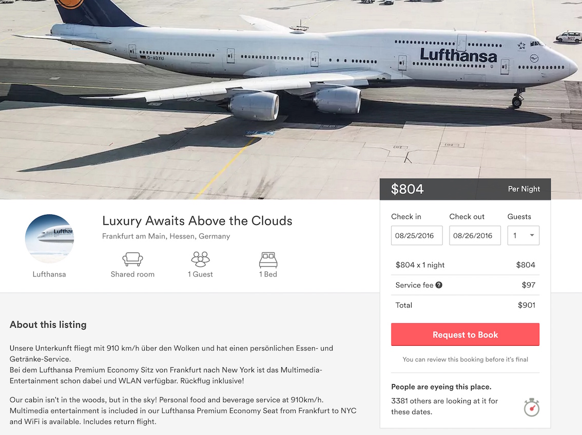 Para Lufthansa, que ha pasado simbólicamente por el trámite de describir el asiento de sus aviones en Airbnb como si fuera una habitación en la que pasar una noche, el movimiento es poco menos que anecdótico: al someterse a la misma estructura de comisiones que Airbnb aplica a toda la plataforma, el coste final de sus vuelos está sujeto a un sobreprecio que hará que en escasas ocasiones pueda ser competitivo, lo que posiblemente llevará a muchos usuarios a localizar el vuelo a través de Airbnb, pero terminar reservándolo en un canal con menores comisiones, pero sin duda marca un cambio de actitud frente a una plataforma que era vista por muchos como una forma de atacar el negocio de los hoteles.