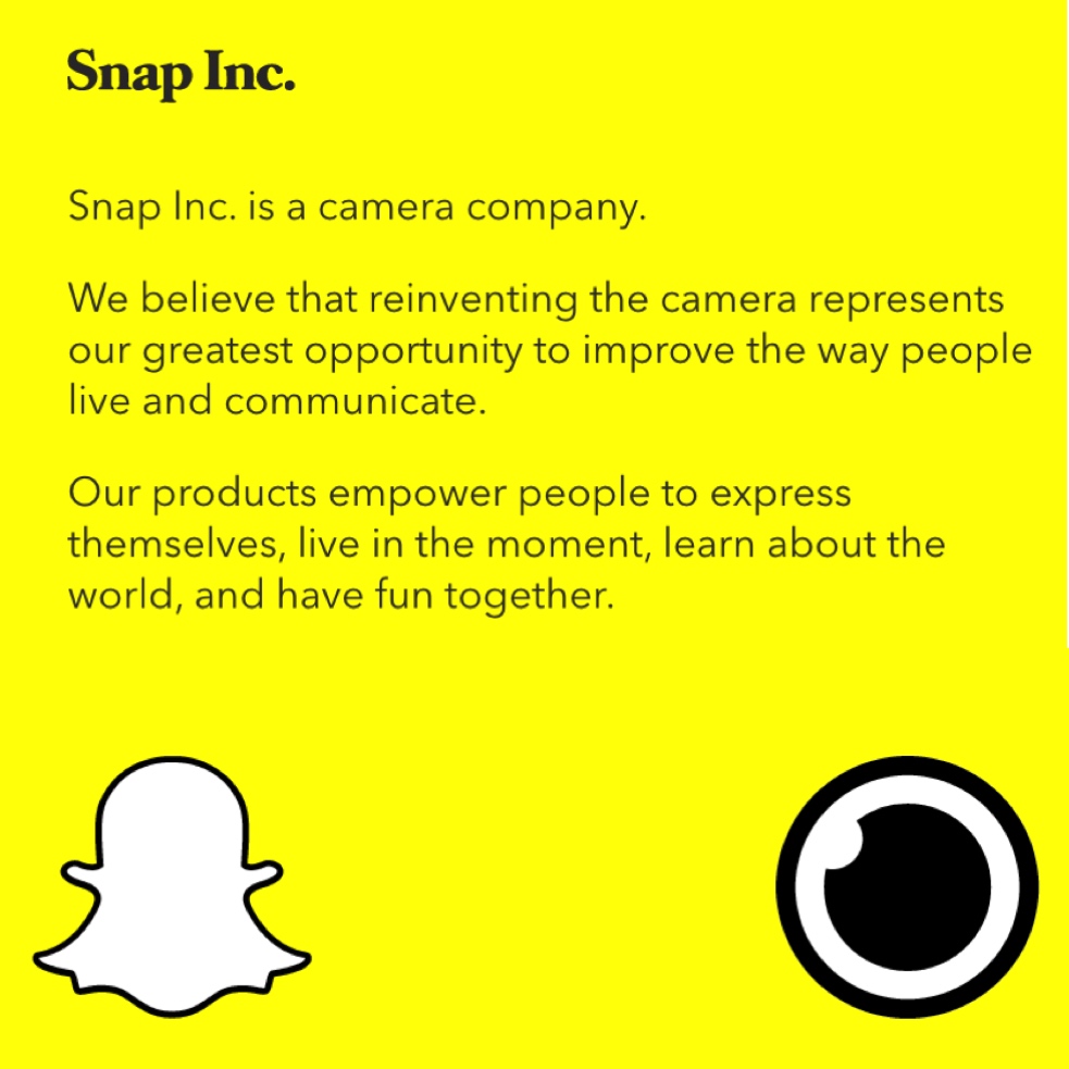 Snapchat se redefine, cambia el nombre de la compañía a Snap Inc. sugiriendo un enfoque más amplio a producto que el indicado por el sufijo «chat» – la marca Snapchat queda relegada a ser el nombre de su conocida y exitosa app – y traslada su nueva actividad a dos dominios recién adquiridos, Snap.com y Spectacles.com.