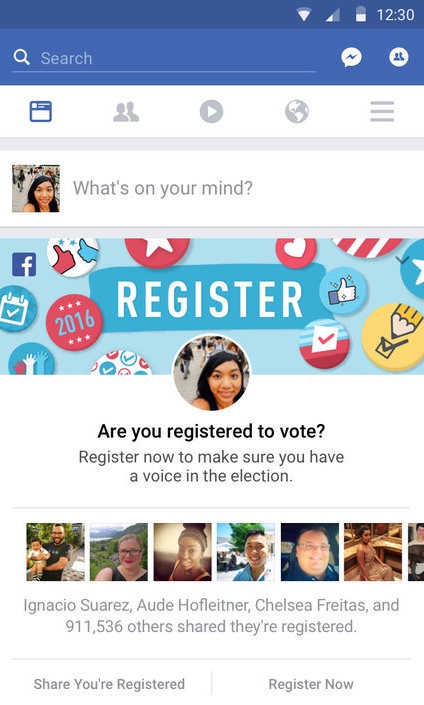 En el primer caso, me parece muy interesante entender el potencial de las redes sociales a la hora de proporcionar no solo recordatorios, sino también caminos que facilitan las cosas a los ciudadanos. El sistema electoral norteamericano exige que los votantes se registren para poder ejercer su derecho al voto, y el porcentaje de votantes registrados ha ido aumentando a lo largo de la historia del país desde los momentos iniciales en los que solo los hombres, propietarios de tierras y blancos podían votar, hasta el momento actual, en el que a pesar de la universalidad del derecho para todos los ciudadanos, menos de un 45% se registra para ello. Que una simple campaña llevada a cabo por una red social como Facebook contribuya significativamente a incrementar el porcentaje de votantes registrados en muchos estados es algo que, sea por la razón que sea, mejora la calidad de la democracia en su conjunto.
