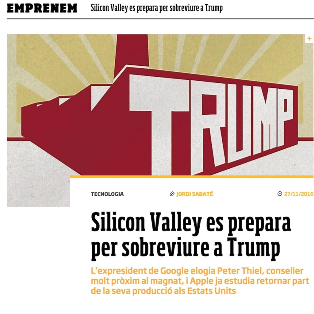 Jordi Sabaté me envió algunas preguntas por correo electrónico para documentar una noticia que hoy ha publicado en el diario Ara, dentro del suplemento Emprenem, bajo el título «Silicon Valley es prepara per sobreviure a Trump« (en pdf).