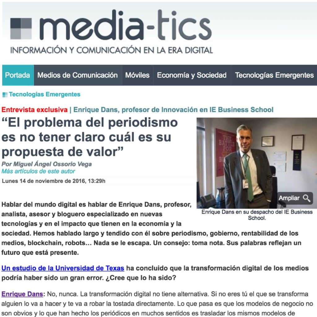 “El problema del periodismo es no tener claro cuál es su propuesta de valor” - Media-tics