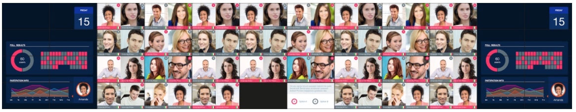 Además, el software permite consumir, crear o editar documentos multimedia y aplicaciones, con posibilidades como navegación colaborativa, todos los formatos ofimáticos, imágenes, vídeos, mapas interactivos, pantallas virtuales, y una aplicación para hacer encuestas en tiempo real que funciona infinitamente mejor que pedir a los alumnos que levanten la mano en clase y contar a ojo. Además, puedes, lógicamente y como harías en una clase presencial, conectar a repositorios de cualquier tipo – YouTube, Vimeo, Flickr, etc. – lanzar búsquedas, o introducir cualquier otro elemento en la sesión, bien planificado o en respuesta a la evolución de la discusión. El control de los recursos se hace desde una interfaz especialmente diseñada para el profesor en las dos pantallas táctiles, o también mediante un algoritmo de reconocimiento de voz. Finalmente, el aula ofrece algunas prestaciones con las que los profesores llevábamos tiempo soñando: la posibilidad de medir el tiempo de participación de los alumnos, el análisis emocional de su nivel de atención, o el tiempo que pasan analizando o utilizando los materiales ofrecidos. Todo ello, además, en un entorno versátil que también podemos utilizar para otros usos: proyección de vídeos 360º, experiencias de realidad aumentada o virtual, o simulaciones y visualización de modelos analíticos de gran tamaño.