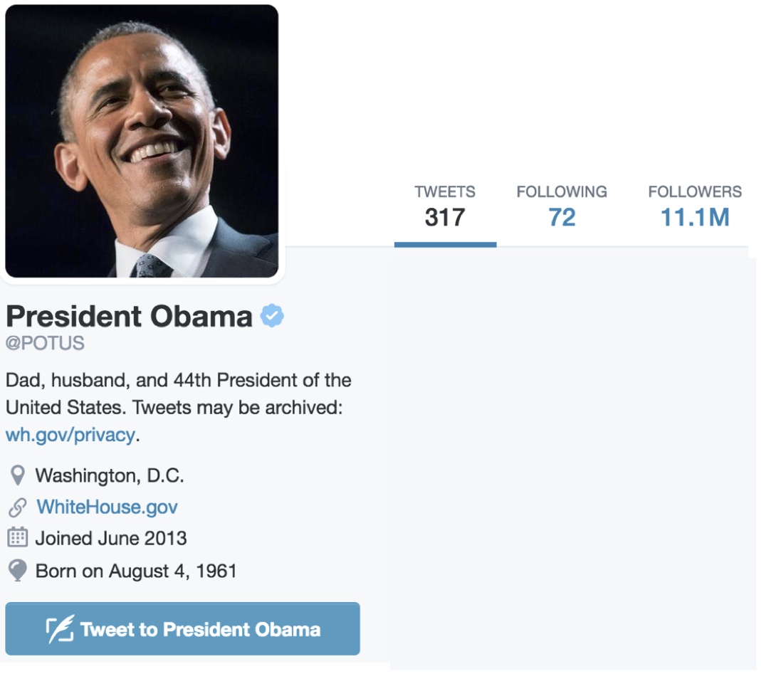 En el caso de Twitter, la administración creará una nueva cuenta, @POTUS44, en la que se almacenarán los tweets creados durante la administración del presidente nº 44, con el fin de que la cuenta @POTUS sea traspasada al nuevo inquilino de la Casa Blanca con sus más de once millones de followers, pero sin ningún tweet en ella, completamente en blanco. Si las encuestas se cumplen, en estas próximas elecciones se produciría además una simpática paradoja, porque Hillary Clinton pasaría a controlar esa cuenta @POTUS, y por tanto su esposo, Bill Clinton, pasaría a tener el control de @FLOTUS, la cuenta teóricamente reservada… para la Primera Dama del país :-)