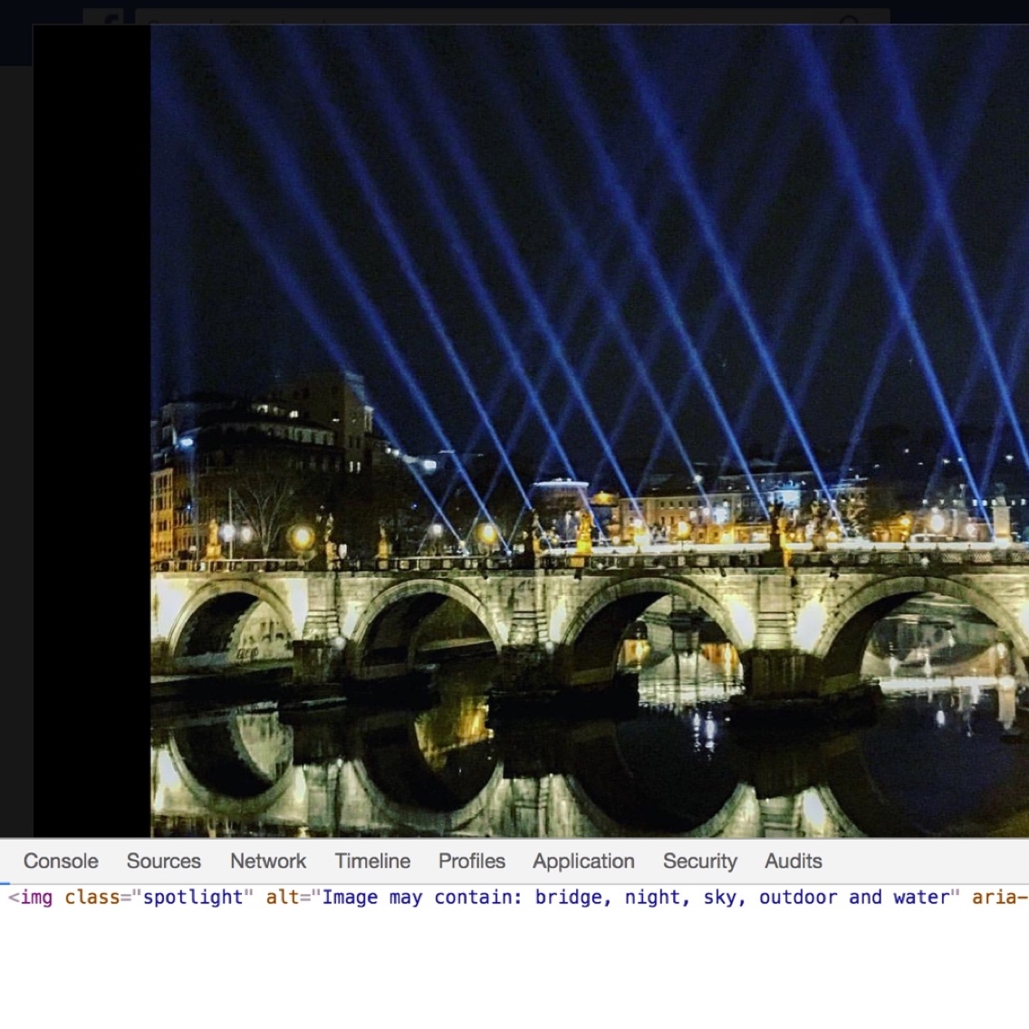 Hasta aquí, todo normal. Ahora fíjate en la pequeña línea de texto inferior, en la que un algoritmo de inteligencia artificial de Facebook examina la fotografía, la interpreta, la compara con una enorme librería de imágenes utilizada para educarlo, y concluye que las imágenes contenidas en la foto son ni más ni menos que eso: bridge, night, sky, outdoor y water. Un etiquetado perfectamente correcto de la fotografía, realizada de manera completamente automática, sin intervención humana. Algo que también utilizan aplicaciones como Google Photos o Apple Photos para ayudarte a organizar tu librería, ahora aplicado a la presentación pública de fotos en una red social.