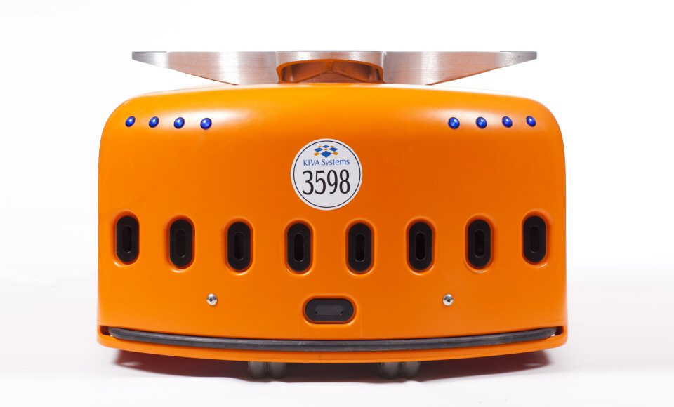 En la foto, un robot de Amazon. Originalmente creado por Kiva Systems tras la mala experiencia de su creador, Mick Mountz, con los costes de logística de Webvan, que terminaron llevándola a la quiebra, la compañía fue adquirida por Amazon en marzo de 2012 por 775 millones de dólares, que dejó expirar los contratos que tenía con grandes compañías de distribución como The Gap, Walgreens, Staples, Office Depot, Crate & Barrel o Saks 5th Avenue, la puso a trabajar exclusivamente para sus almacenes y la rebautizó como Amazon Robotics.
