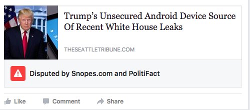 Facebook pone en marcha su mecanismo para etiquetar las noticias disputadas como tales, a partir de la comparación de repositorios de fact checking como Snopes, PolitiFact u otros que acepten una serie de principios de funcionamiento. El movimiento de Facebook coincide precisamente con el momento en que Google empieza a recibir fuertes críticas debido a los snippets con los que responde a determinadas búsquedas, en los que aparentemente no llevan a cabo ni el más mínimo y elemental proceso de comprobación, y recurre a fuentes de credibilidad nula o a sitios con visiones intensamente partidistas, tratándolos como fuentes de información supuestamente fiable y considerándolos como respuestas válidas.