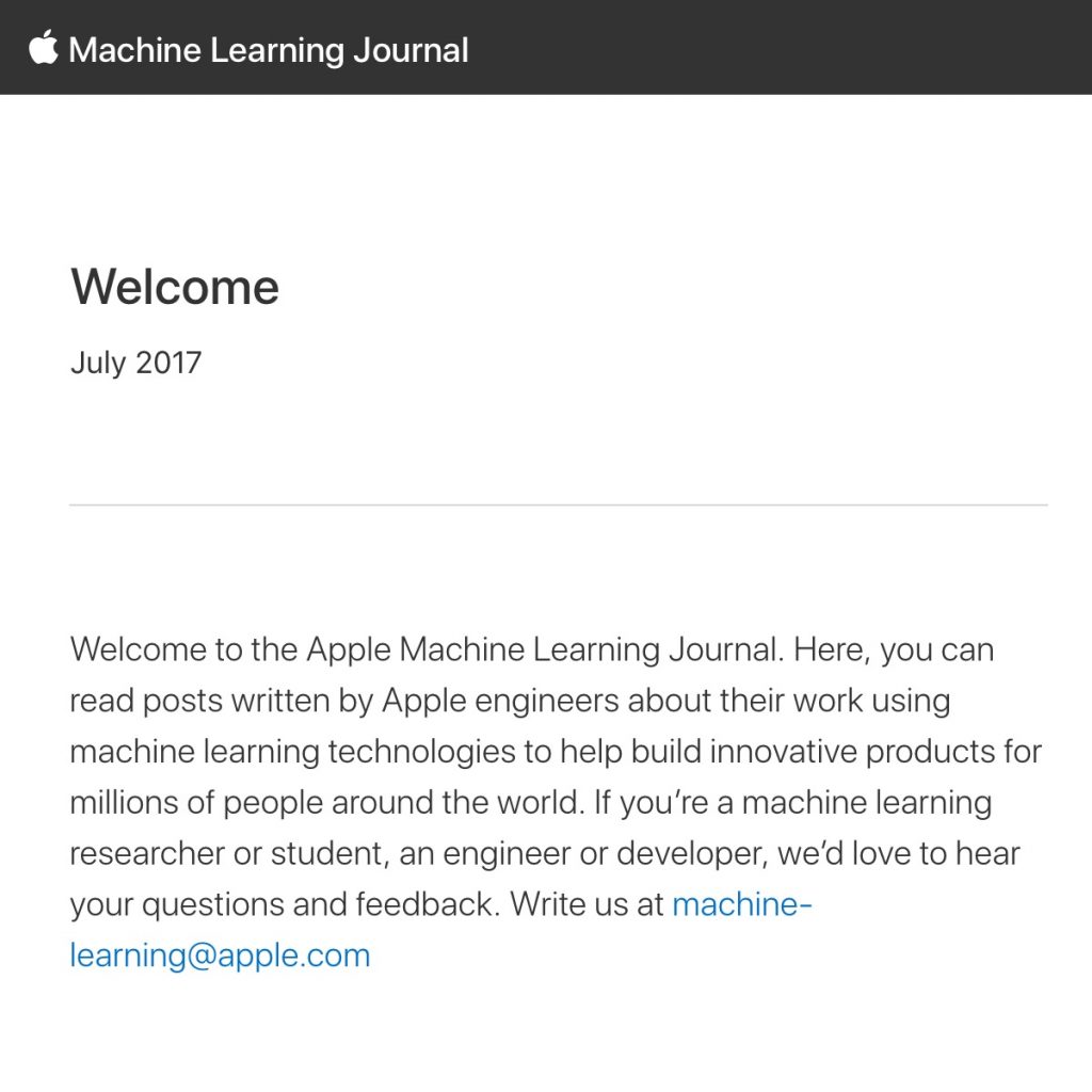 Apple Machine Learning JournalDurante muchas décadas, el mundo corporativo ha vivido en torno a un elemento fundamental: el secreto. Si querías hacer algo, lo desarrollabas en secreto. Sin decírselo a nadie, contratabas a las personas adecuadas, les proporcionabas los medios necesarios, y cuando tenían listo aquello que considerabas que te otorgaba una ventaja sobre tus competidores, lo ponías en el mercado por sorpresa. Esa idea del «factor sorpresa», de la necesidad de pillar a tus competidores desprevenidos, sin que tuviesen idea de lo que estabas tramando para conquistar el mercado y posicionarte como pionero, era un elemento absolutamente fundamental en los negocios, y se trataba de mantener a todos los medios mediante el uso de todo tipo de herramientas: puertas cerradas, acuerdos de confidencialidad, embargos a los medios, etc.
