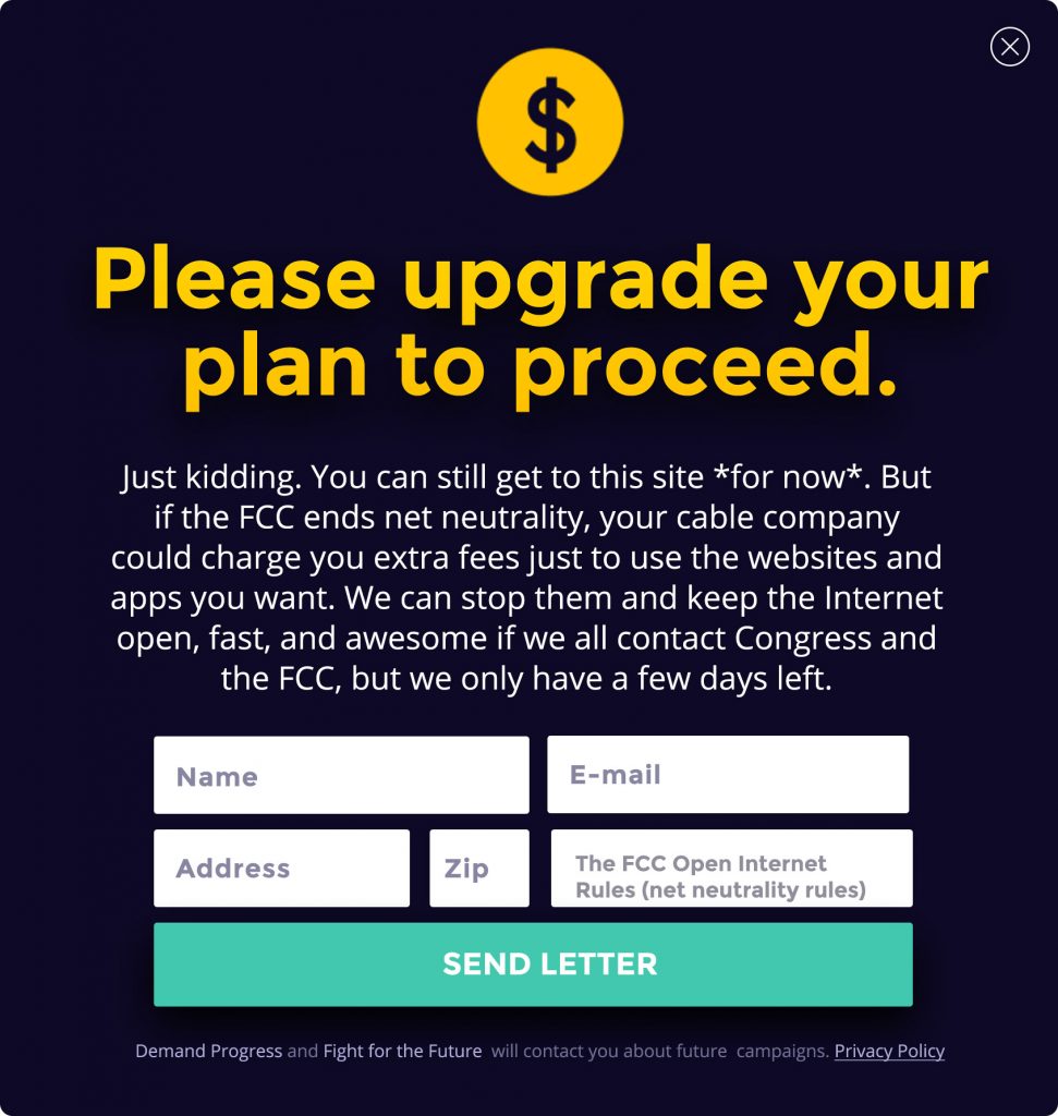 El sistema de democracia representativa norteamericano, en el que todo ciudadano puede enviar a su representante, al congresista o senador específico que le representa ante el Congreso o el Senado, hace el resto: todo norteamericano que, el día 12, se encuentre con los banners u otros modos de protesta que las páginas que visita habitualmente deseen mostrar, podrá enviar desde las mismas una carta a sus representantes demandando que los planes de Donald Trump sean detenidos. En Europa, con una sociedad civil con una conciencia de movilización prácticamente inexistente, este tipo de iniciativas son imposibles de organizar, y terminamos encontrándonos con que los lobbies organizados por empresas con amplios presupuestos para ello acaban haciendo lo que les viene en gana.