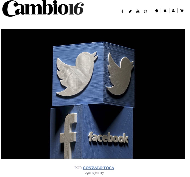 Gonzalo Toca, de Cambio16, me llamó para hablar sobre el fenómeno de las fake news y la necesidad de las redes sociales de controlar la información que difunden, incluso derivada de requerimientos legales para ello, y hoy publica «La última frontera de las redes sociales«, en donde cita algunos de mis comentarios al respecto.