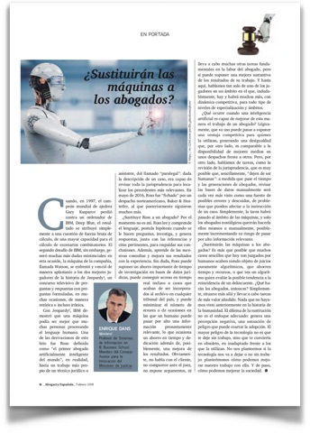 La revista del Consejo General de la Abogacía, Abogacía Española, me pidió un artículo para su nº 108, que han titulado «¿Sustituirán las máquinas a los abogados?» (pdf), y en el que precisamente intenté analizar por qué razones el análisis de la posible sustitución de una tarea desarrollada por personas mediante una desarrollada por máquinas es, a mi juicio, erróneo.