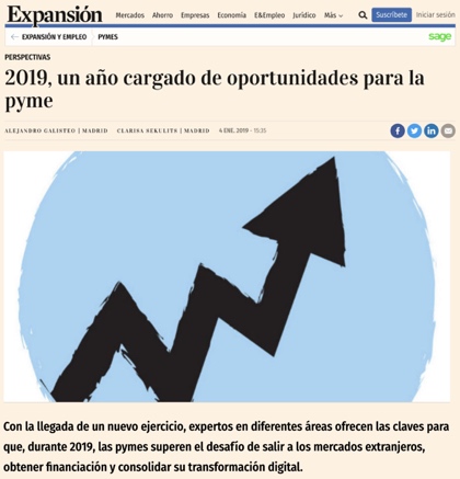 Clarisa Sekulits, de Expansión, me llamó el pasado diciembre para hablar sobre las perspectivas tecnológicas de las pequeñas y medianas empresas para este 2019 que estamos ya inaugurando, y hace dos días publicó una pieza con Alejandro Galisteo titulada «2019, un año cargado de oportunidades para la pyme» (pdf).