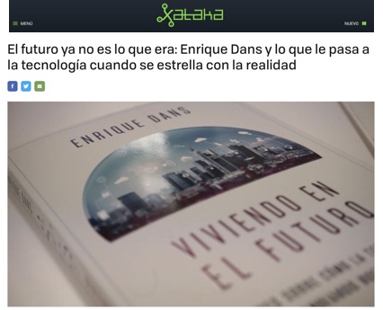 Javier Jiménez, de Xataka, se pasó por mi despacho hace unos días para hacerme una entrevista acerca de mi libro, «Viviendo en el futuro«, y ayer la publicó bajo el título «El futuro ya no es lo que era: Enrique Dans y lo que le pasa a la tecnología cuando se estrella con la realidad«.