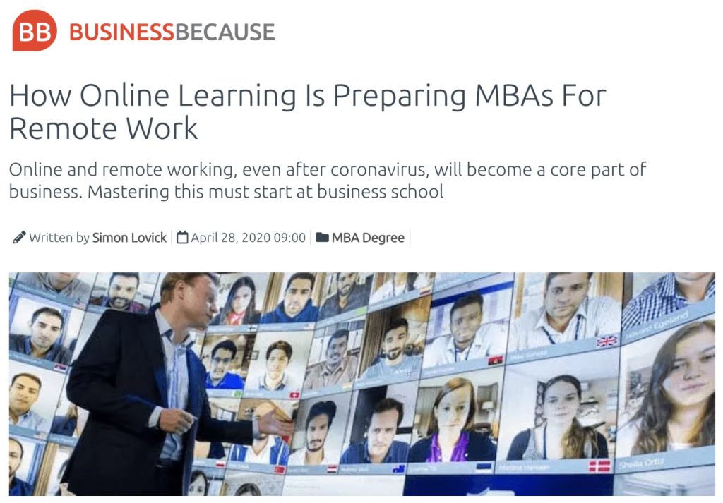 Simon Lovick, de BusinessBecause, me llamó hace una semana para hablar sobre los veinte años de experiencia de IE University en formatos híbridos de alta calidad, y hoy publica un artículo titulado «How online learning is preparing MBAs for remote work« (pdf).