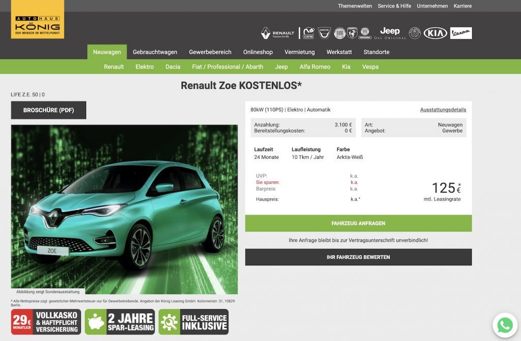 Enrique, el leasing de 0 euros del Renault Zoe que ofrece Autohaus König es solo para clientes empresariales. Los clientes particulares están excluidos.