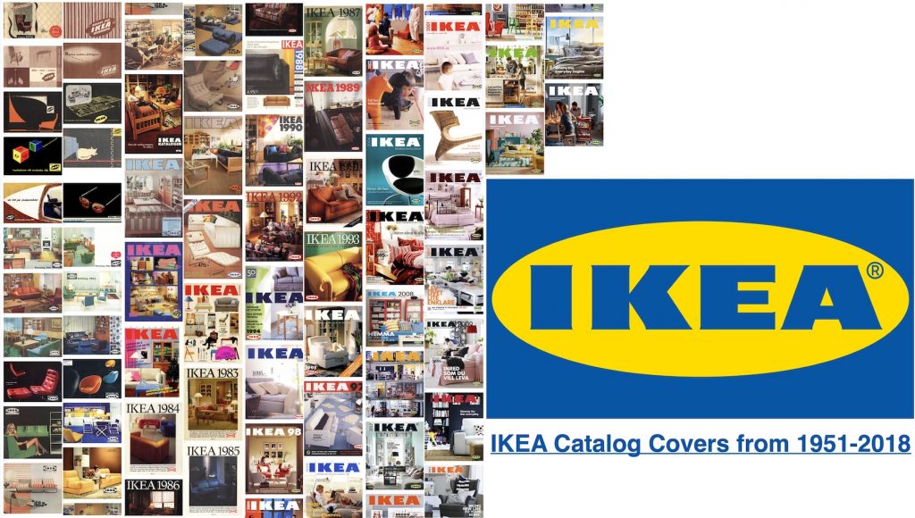 El primer catálogo fue creado por el fundador de la compañía, Ingvar Kamprad, en el año 1951, cuatro años después de su fundación: tenía 68 páginas, imprimió 285,000 copias en sueco, y las distribuyó en la zona sur del país. En el momento de su máxima popularidad, en el año 2016, la compañía llegó a imprimir 200 millones de copias en treinta y dos idiomas, para ser distribuidas en cincuenta países. En su última edición, este año 2020, la edición fue de 40 millones de copias. Si quieres ver las portadas de todos los catálogos impresos entre 1951 y 2018 y buscar, por ejemplo, la edición del año en que naciste, aquí las tienes todas. El último, el de 2021, está disponible aquí. En otoño de ese año, la compañía publicará una edición conmemorativa de su catálogo con imágenes de ediciones anteriores en modo nostálgico, y dirá adiós a una tradición de setenta años.