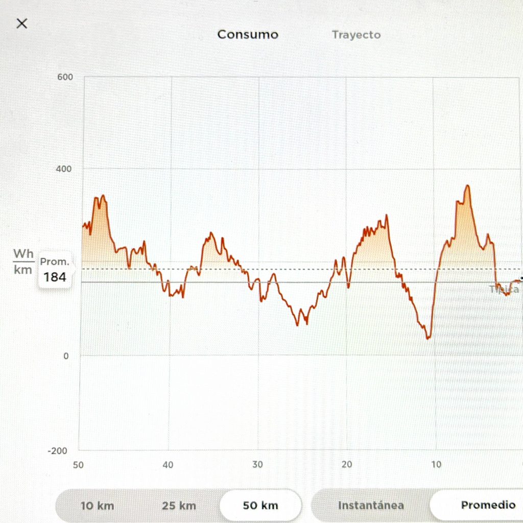 Esa gráfica de consumo es inconfundible. Tengo el mismo coche que tú, también desde hace 2 años. Justamente ayer cumplí 60.000 km con él. Coste de esos km: 30€. No, no me he dejado ningún cero. Lo vuelvo a escribir: 30€. ¿Y por qué 30€?. Pues porque ha habido unas cuantas ocasiones en que he tenido que cargar fuera de casa pagando. De momento, gracias a los referidos, las cargas en supercargadores no las pago. Tengo una tarifa eléctrica en mi casa un tanto especial, en la cual no pago el consumo de 1 a 7 de la mañana, que es cuando cargo el coche. Tiene su compensación el resto del día, que es un poco más cara, pero globalmente me sale a cuenta porque hago muchísimo consumo en esas 6 horas. Creo que pagas por las cargas de tu coche más de lo necesario. Yo en tu lugar estudiaría otras tarifas eléctricas más ventajosas ;-). Por cierto, mi promedio es un pelín inferior al tuyo: 178 Wh/km.