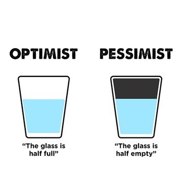 La clásica división entre optimistas que ven siempre el vaso lleno y pesimistas que lo ven invariablemente medio vacío es profundamente simplista. Ni las personas responden siempre a los mismos estímulos, ni actúan siempre de la misma manera, ni las cosas son tan simples como para reducirlas todas a una simple actitud. Podemos pensar, intuitivamente, que los pesimistas tienden a parar proyectos resaltando incansablemente sus problemas y considerándolos irresolubles, y eso nos llevaría, seguramente, a pensar que debemos alejar a los pesimistas de los proyectos con potencial y rodearlos de optimistas. Pero la realidad es que algo así sería, seguramente, una mala idea, que nos llevaría a mantener absurdamente proyectos completamente fracasados, poco realistas y sin visos de éxito. Como en esa frase atribuida a George Bernard Shaw: «tanto los optimistas como los pesimistas contribuyen a la sociedad. El optimista inventa el avión, el pesimista el paracaídas».