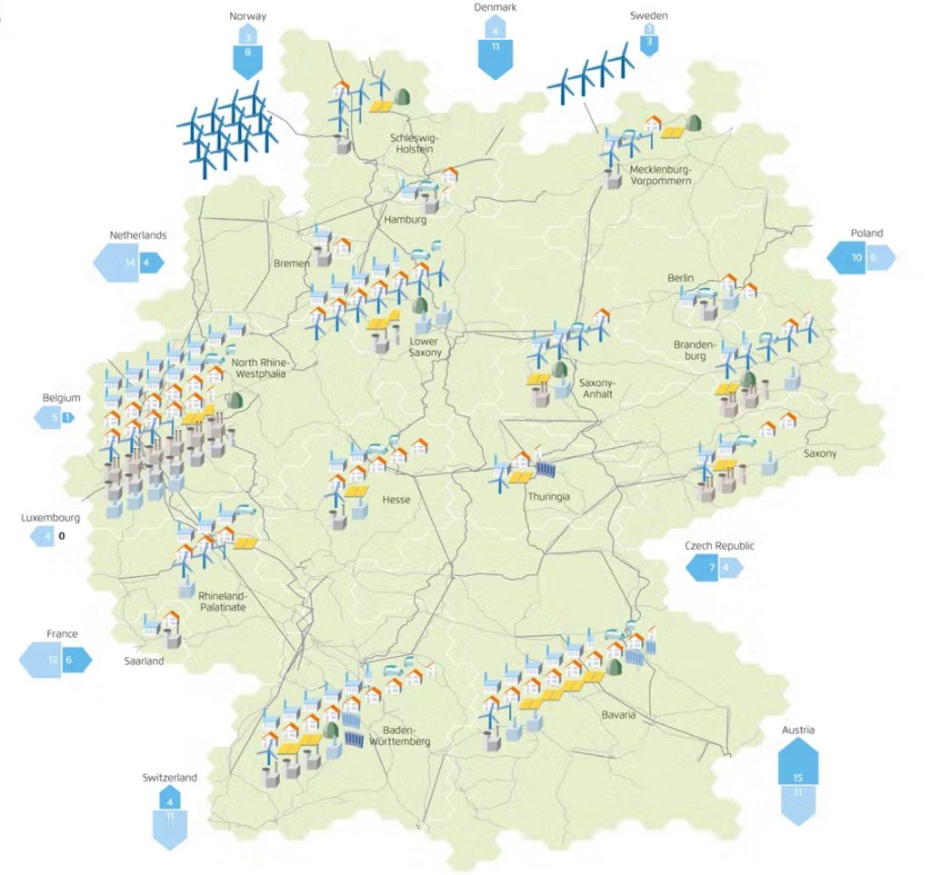 Obviamente, esto exige cambios. En primer lugar, Alemania planea dedicar el 2% de su territorio a parques eólicos, lo que implica que los alemanes deberán acostumbrarse a ver aerogeneradores, y que las protestas por su ubicación son, simplemente, un problema de nostálgicos incapaces de ver la importancia del tema. Además, el país está llevando a cabo importantes inversiones en eólica marina y en parques solares, y es líder en instalaciones domésticas de paneles y de baterías. De nuevo, otro mito que cae: es perfectamente factible abastecer a un país mediante energía solar, eólica y baterías manteniendo el precio de la electricidad a niveles competitivos, y la dependencia del clima no tiene por qué significar problemas de suministro.