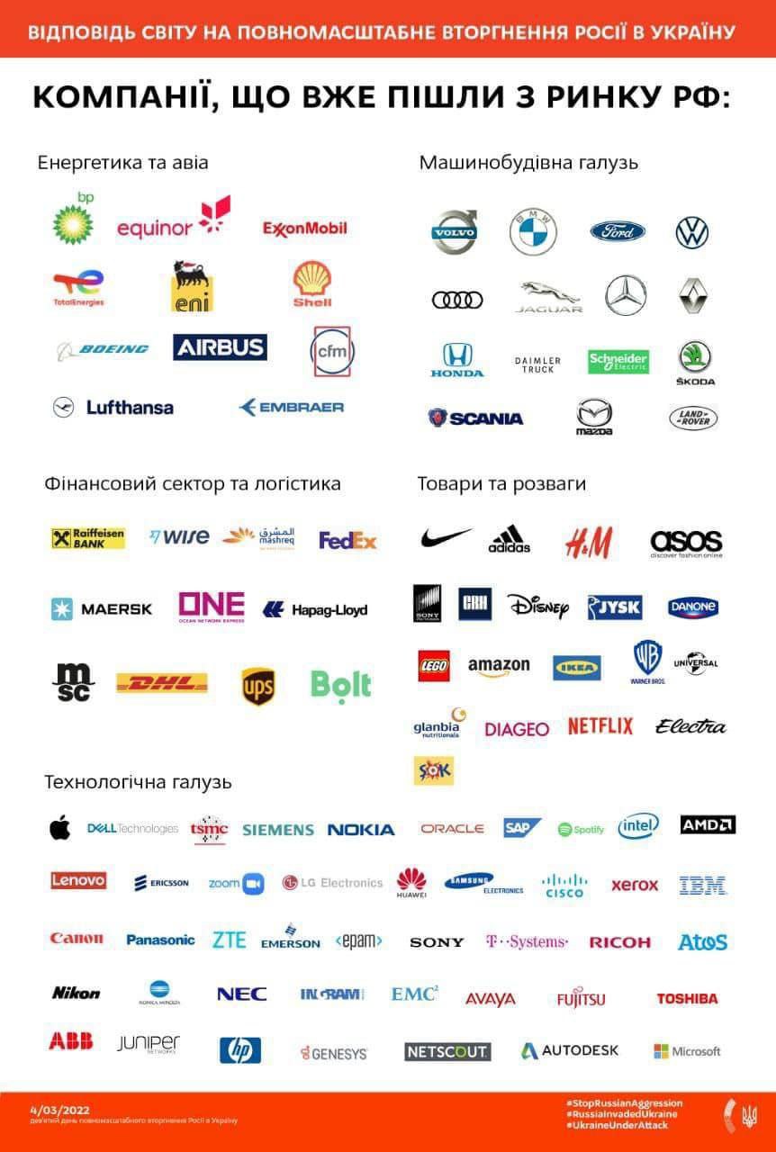 Así, son ya bastantes las compañías que han anunciado acciones que van desde el cierre de tiendas o la salida del mercado ruso, hasta la interrupción de sus servicios: a día de ayer, empresas como Apple, que ha cerrado sus tiendas pero mantiene su App Store aún operativa; Airbus y Boeing, que dejarán de enviar piezas y de dar mantenimiento a las flotas de aviones en el país; Adidas, Alphabet (tanto Google como YouTube, que interrumpen la venta de publicidad); MasterCard y Visa, cuyas redes dejan de estar operativas; y también Burberry, Disney, Exxon Mobil, Facebook, Ford, Harley-Davidson, Ikea, Jaguar Land Rover, Mango, Mercedes Benz, Microsoft, Netflix, Nike, Reddit, Snap, Twitter, Volkswagen, Wise y muchas más. A ellas se ha unido hoy Airbnb, que ha interrumpido sus servicios en Rusia y Bielorrusia pero los mantiene en Ucrania, país al que nadie en su sano juicio va a ir a hospedarse estos días, pero que está registrando actividad en su red porque muchos usuarios utilizan Airbnb para reservar propiedades como forma de hacer donaciones económicas a sus propietarios.