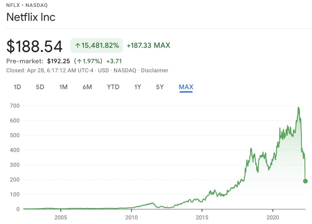 ¿Le pasa algo, por tanto, a Netflix? A cualquier compañía que pierda un 70% de su valor en bolsa le pasa algo, seguramente muchas cosas. ¿Pero deben esas señales llevarnos a pensar que semejante caída está justificada, que se mantendrá en el tiempo o que el modelo ya no funciona? ¿Son problemas sin solución? Sinceramente, mi opinión es que no es así, que lo que le ocurre a la compañía les ha pasado antes a muchas otras, y que no tiene por qué suponer un problema existencial. Nada de lo que no pueda recuperarse.