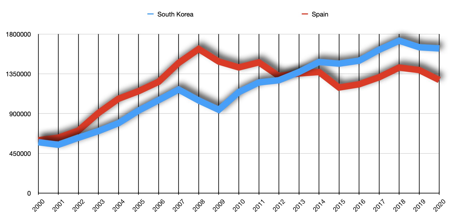 Sólo un matiz. ¡España es cinco veces más grande que Corea! Que sé que está en el mismo orden de magnitud (centenas de miles de km2), pero por aportar algo :P