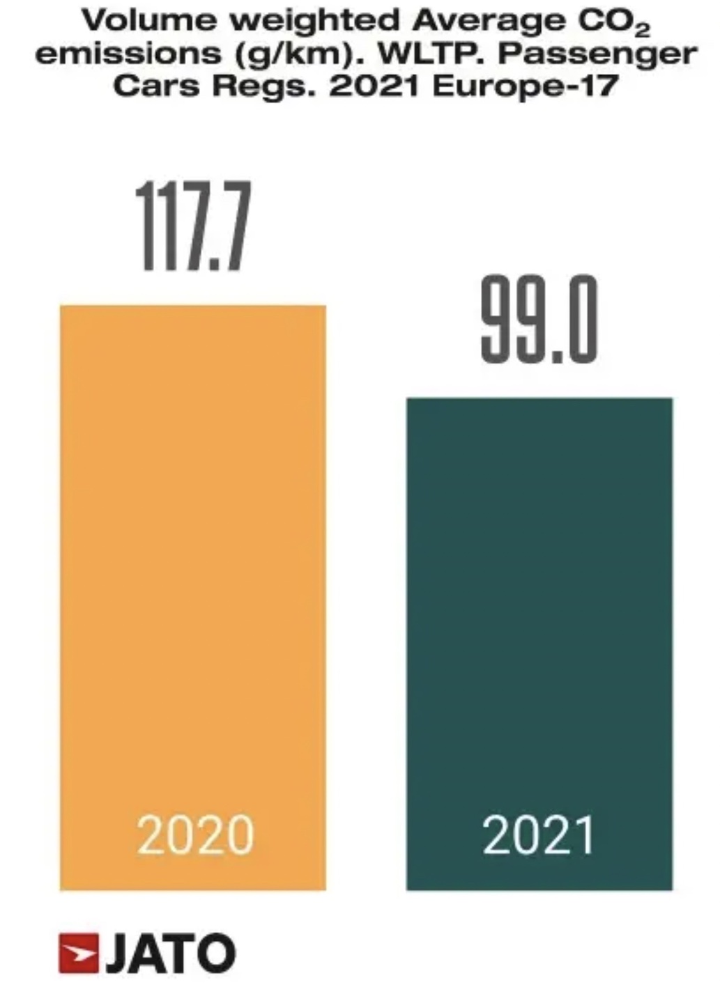 Un análisis de JATO Consulting de las emisiones de dióxido de carbono en la Unión Europea durante el pasado año 2021 viene a demostrar que el fuerte incremento de las ventas de vehículos eléctricos en varios países del continente ha provocado una disminución significativa del 16% en las emisiones de los vehículos nuevos, desde los 117.7 g/km hasta los 99 g/km.