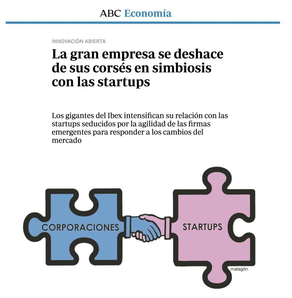 Laura Montero, de ABC, me llamó por teléfono para hablar sobre la innovación abierta en las grandes compañías, y cómo ese tipo de programas de colaboración con startups parecen estar generalizándose y convirtiéndose en un recurso habitual. Hoy publica «La gran empresa se deshace de sus corsés en simbiosis con las startups» (pdf), en la que me cita brevemente.