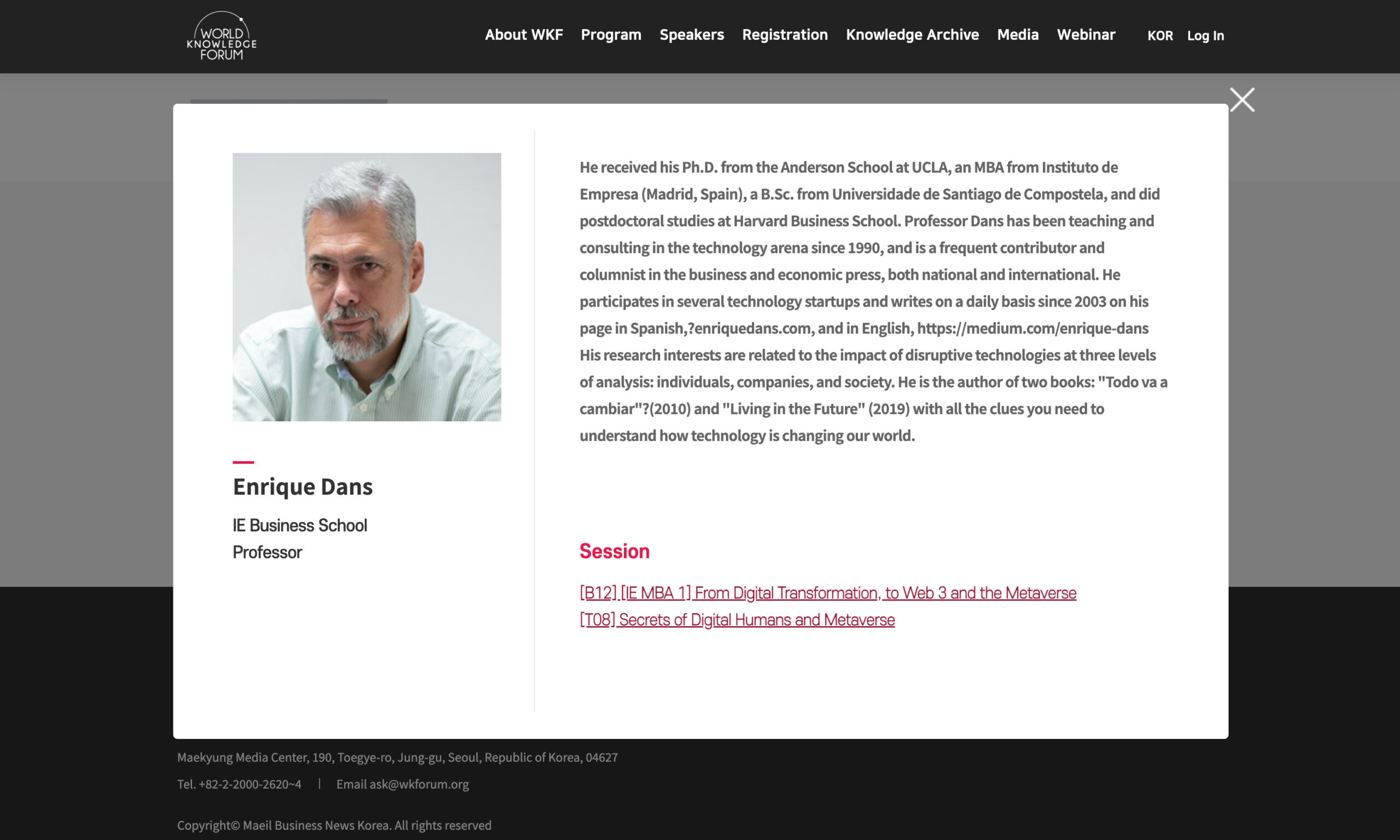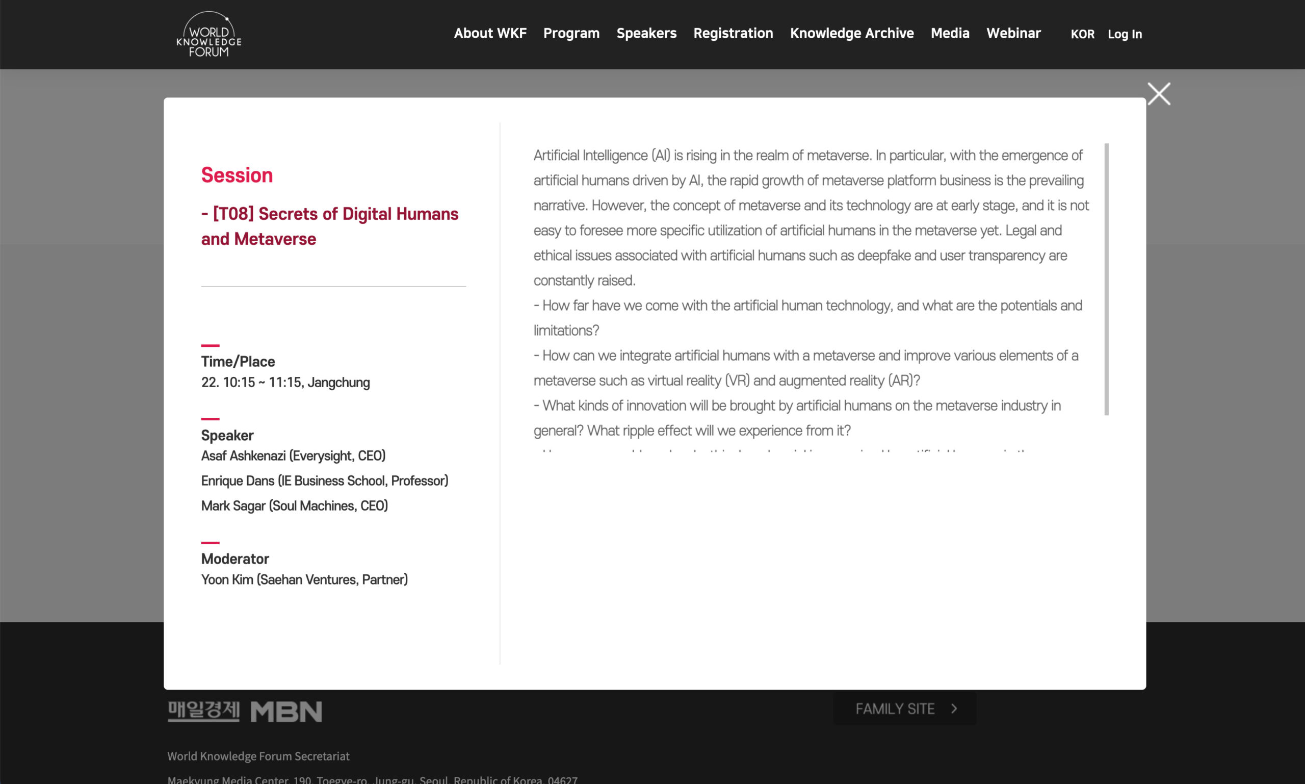 Mis respuestas a las preguntas de Óscar han tocado las mismas temáticas que me han traído estos días a Seúl al World Knowledge Forum 2022 (pdf), en donde he dado una conferencia y participado en una mesa redonda hablando sobre el contexto necesario para que el metaverso sea lo que se espera que sea, y no un simple «videojuego con esteroides». Básicamente, que sea de código abierto, reforzado mediante criptografía, sin depender de ninguna compañía ni de sus términos de servicio, transparente, gestionado por la propia comunidad de usuarios, con la identidad y la información de los usuarios controlada por ellos mismos, con múltiples posibilidades en cuanto a hardware, etc.