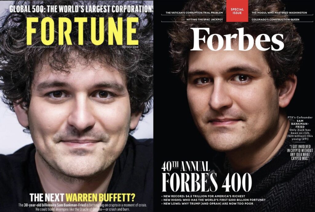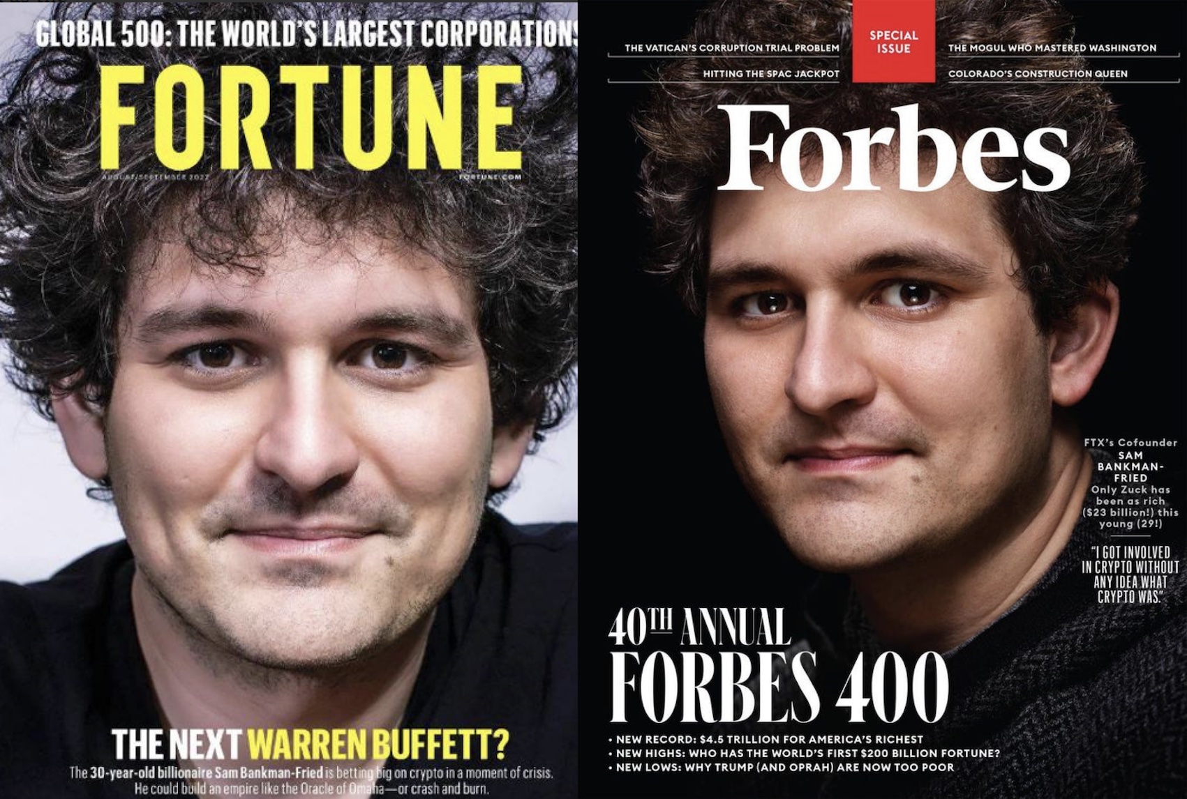 Sam Bankman-Fried era, para toda la sociedad norteamericana, una de esas historias de éxito que apasionan a los medios y que, de paso, los llenan de dinero con campañas publicitarias. Aún ahora tras la quiebra, hay quien advierte que el tratamiento informativo dado por los medios en los que Bankman-Fried gastó mucho dinero es mucho más benévolo que el que debería corresponder a una historia que es simplemente un fraude con todas sus letras, en el que además, para culminar, el protagonista termina huyendo con un buen montón de dinero. Durante la temporada en la que nuestro protagonista consiguió contar su historia y salir en portadas como las de las revistas Fortune o Forbes, que ilustran este artículo, los medios desarrollaron una narrativa de joven triunfador, de héroe de las finanzas, para quien, en la práctica, no era más que un irresponsable rodeado de un equipo de delincuentes, alguno de los cuales, para terminar de simular el guión de una película, se llamaba Sam Trabucco.