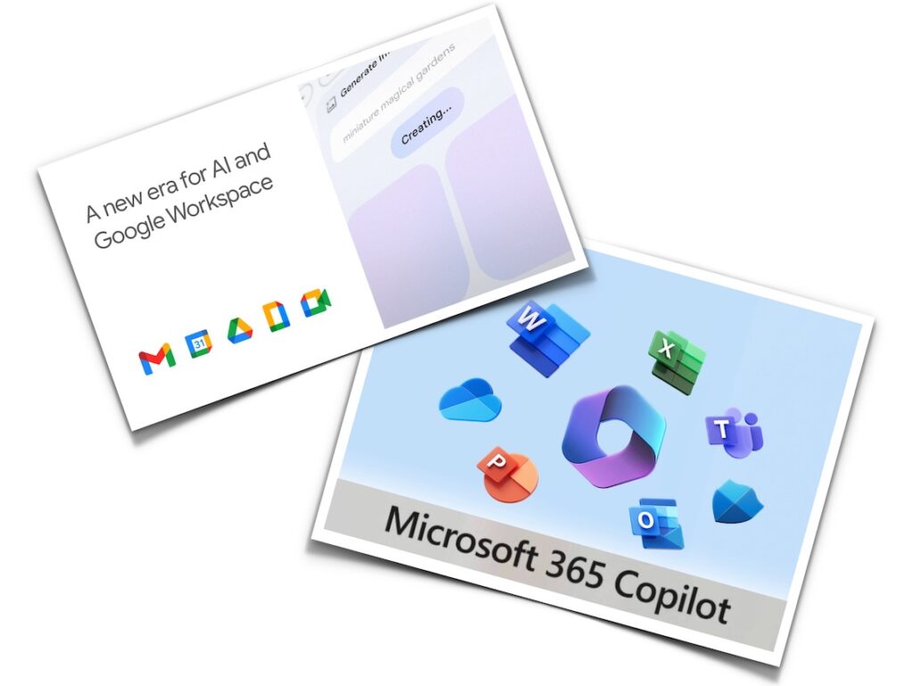 Microsoft y Google se enzarzan en una batalla por la integración de sus respectivos asistentes de machine learning en sus suites ofimáticas, y lo hacen anunciando prácticamente a la vez una serie de prestaciones indudablemente muy atractivas para el trabajo con ofimática – correo electrónico, proceso de textos, hojas de cálculo, programas de presentaciones, etc. – con enormes similitudes entre sí.