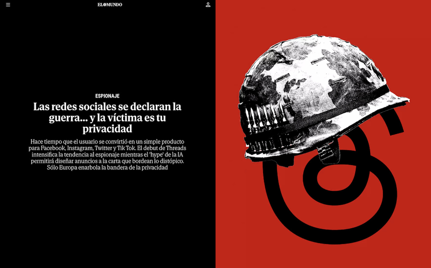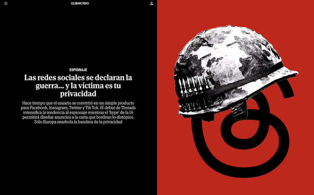 Fede Durán, de El Mundo, me llamó para hablar de la evolución de las redes sociales al hilo del lanzamiento de Threads, y de cuáles eran las consecuencias para los usuarios de la dinámica actual. Hoy me cita en su artículo en portada de Actualidad Económica titulado «Las redes sociales se declaran la guerra… y la víctima es tu privacidad» (pdf texto, pdf maquetado).