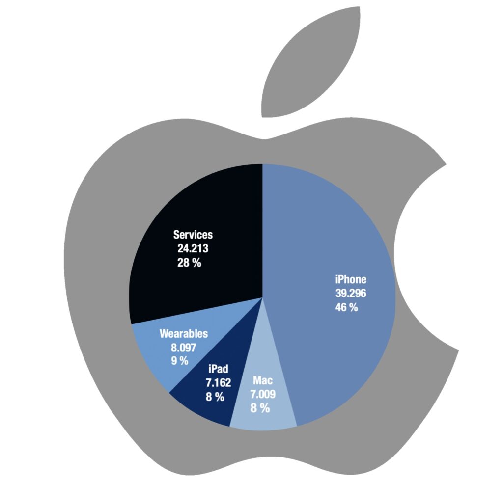 Yo lo veo de otra forma. Basándome en el grafico de eDans, queda claro que Apple, solo tiene una línea que realmente genere “resultados”. El iPhone. Ni wearables, ni Mac, ni iPad, son representativos (si en la empresa, no en el mercado mundial). Sin embargo, y ya que algún “innombrable” tiene sus dudas, lo de “Abuso de posición dominante” o vulgarmente conocido como “monopolio”, se da en este caso. Nada ni nadie puede entrar en el ecosistema sin la autorización de la compañía…
