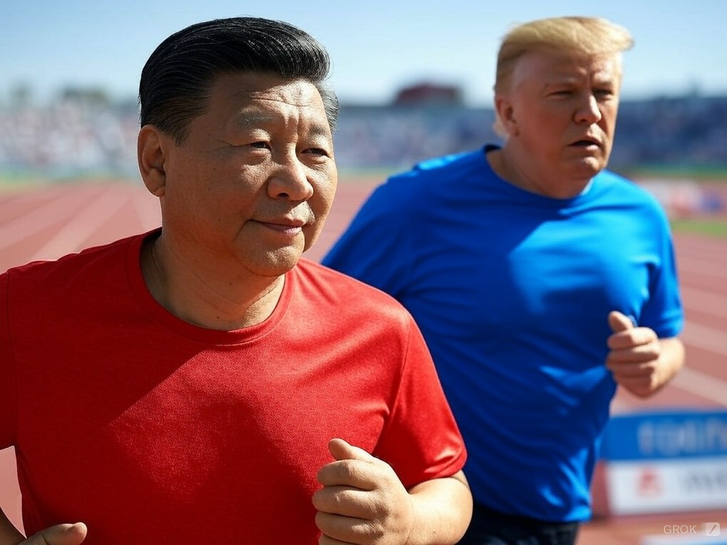 IMAGE: Xi Jinping outrunning Donald Trump on a track race, as drawn by Grok