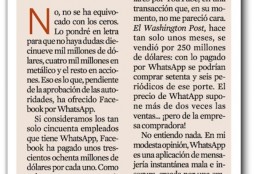 El miércoles por la noche cambié rápidamente el tema de mi columna de Expansión para dedicarla a la para mí demencial operación de adquisición de Facebook sobre WhatsApp, que se ha publicado hoy bajo el título «Que WhatsApp vale… ¿QUÉ?» (pdf). Además, mi opinión ha estado en varias …