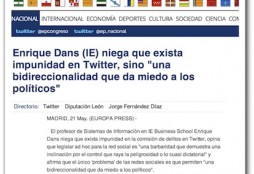 Isabel Vega, de Europa Press, me llamó para hablar sobre la supuesta «impunidad» que algunos medios supuestamente rigurosos pretenden que tienen las redes sociales, y sobre la obsesión por el control que parece aquejar últimamente a algunos políticos. Lo