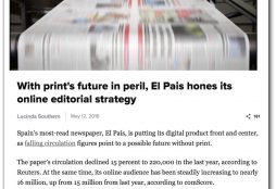 Lucinda Southern, de Digiday, me llamó por teléfono para hablar del anuncio de hace algunos meses de El País en el que se planteaban abandonar la edición impresa, y ha publicado algunas de mis impresiones en su artículo titulado «With print’s future in peril, El Pais hones its online editorial