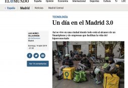 Luis N. Villaveiran, de El Mundo, me llamó por teléfono hace unos días para hablar sobre los cambios de hábitos y el impacto del desarrollo tecnológico en la vida en una ciudad como Madrid, y ayer domingo publicó un artículo titulado «Un día en el Madrid 3.0» (pdf) en el que me