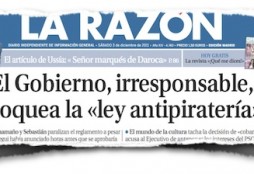 Tras el episodio del fallido intento de aprobación in extremis de la ley Sinde, el gremio de estranguladores de la cultura incrementa su presión, recurriendo con incansable reiteración a los mismos argumentos falsos de siempre. La demencial portada de La Razón, el