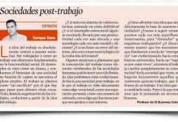 Mi columna de Expansión de esta semana se titula «Sociedades post-trabajo» (pdf), y es una pequeña reflexión sobre la posibilidad, cada día más contemplada por algunos analistas, de que estemos evolucionando hacia un tipo de sociedad marcadamente diferente en la que el trabajo pasaría a tener un papel