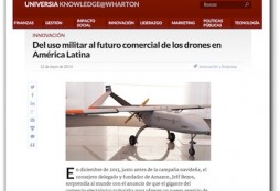 Ana Escalante, de UniversiaKnowledge@Wharton, me llamó, al hilo de este artículo que publiqué recientemente, para hablar sobre los diferentes usos de los drones. Además del uso militar, en el que no entré demasiado, comentamos sobre los distintos tipos de drones, desde los pequeños que vuelan en superficie y
