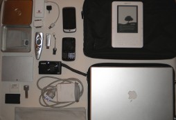 Algunos es posible que recordéis un meme que circuló hace unos cinco años, bajo el título Whatsinyourbag: consistía en exponer y fotografiar toda la tecnología que llevabas encima en un día cotidiano. En aquel momento, marzo de 2005, mi Whatsinyourbag tenía el aspecto que veis en este enlace: